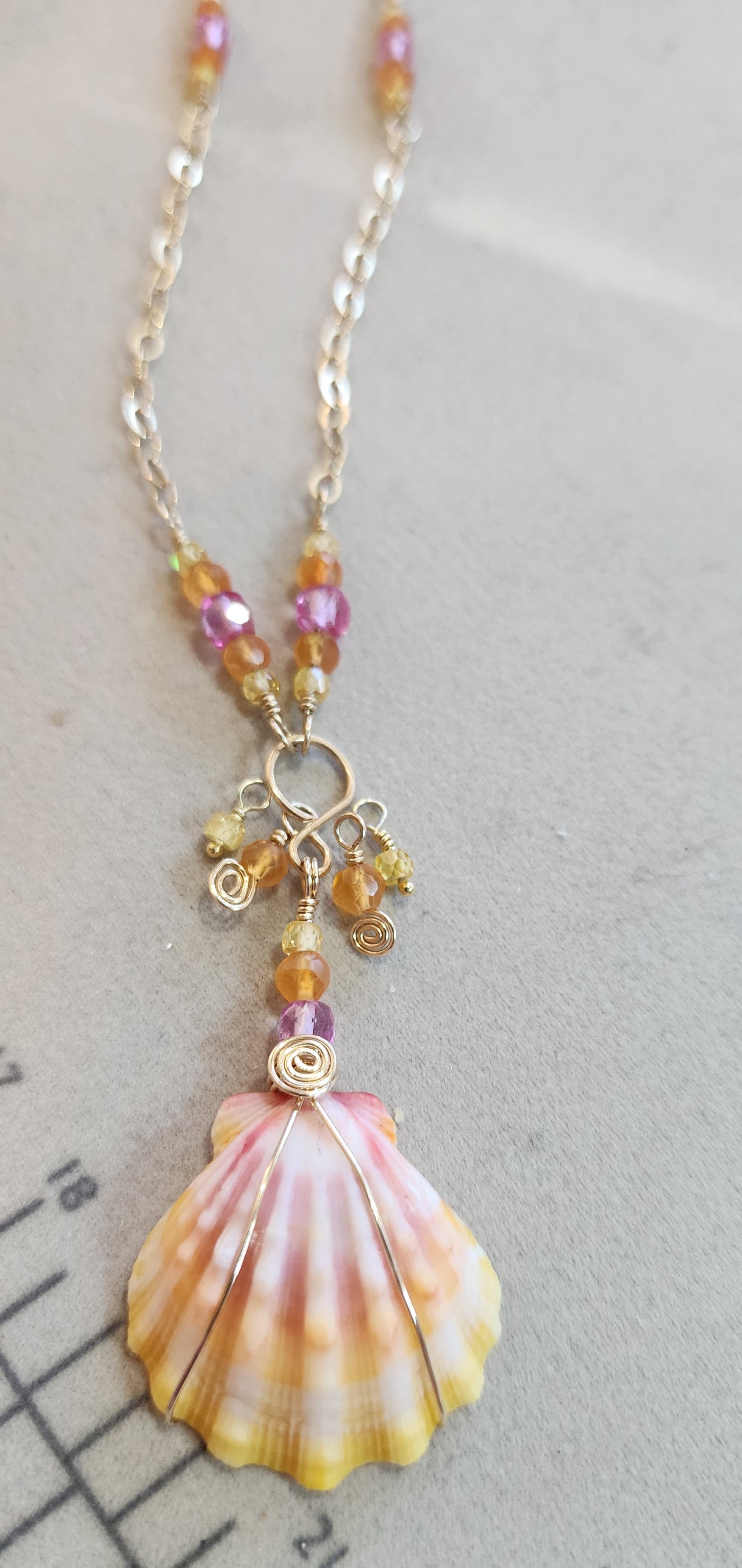 Sunrise shell, Topaz, Zircon, Carnelian 14k gold fill Necklace